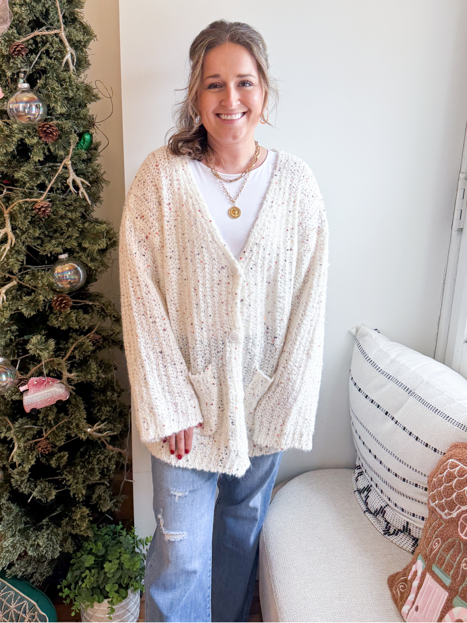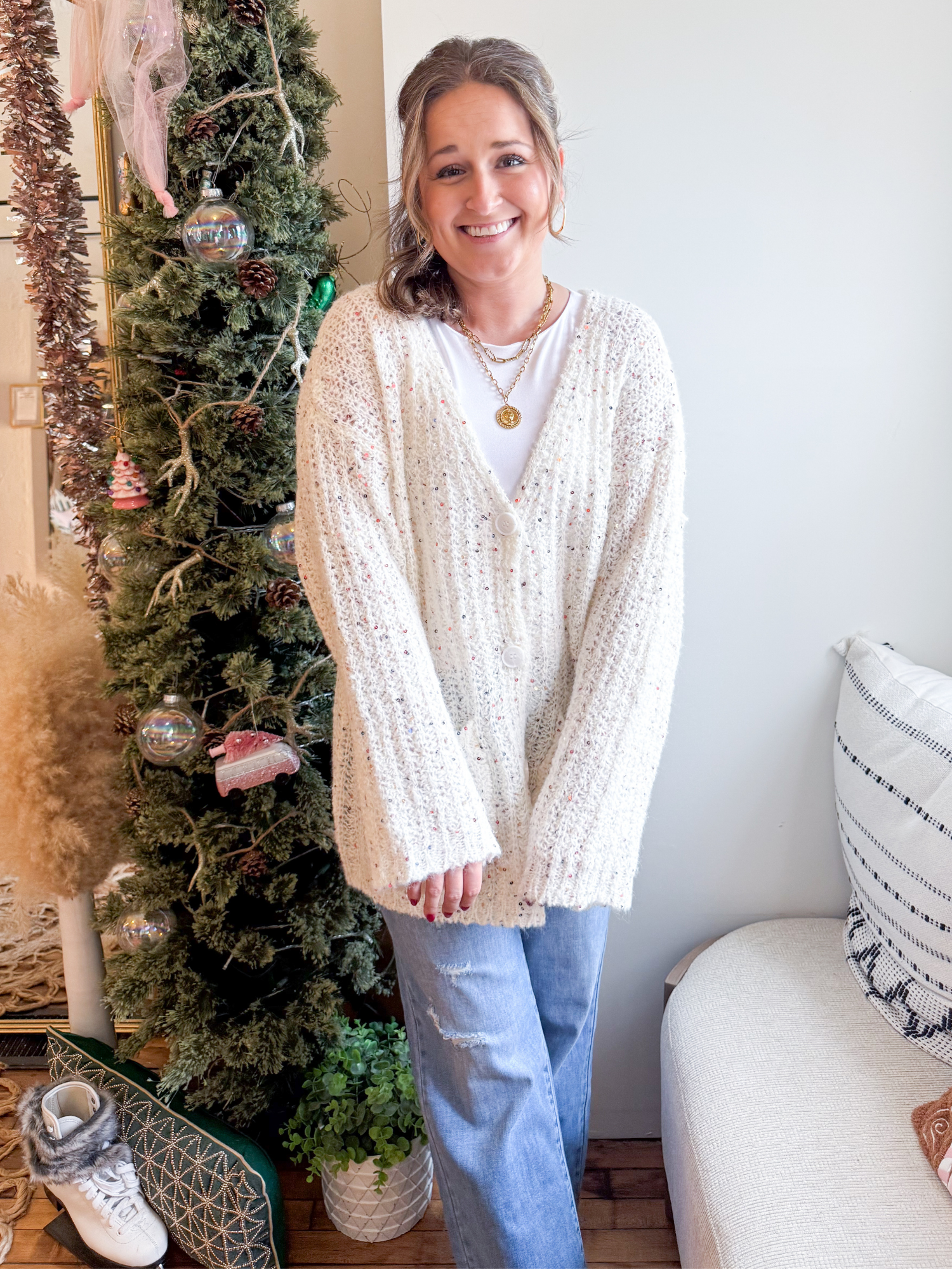 Abbi Sequin Speckled Oversized Cardigan - Cream