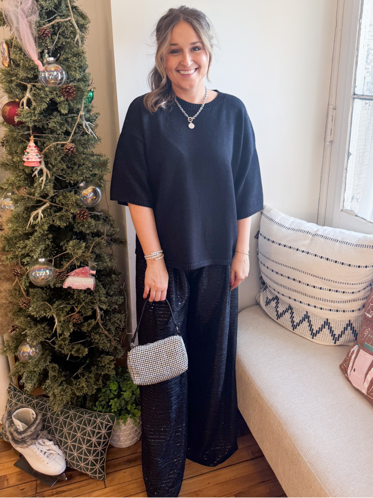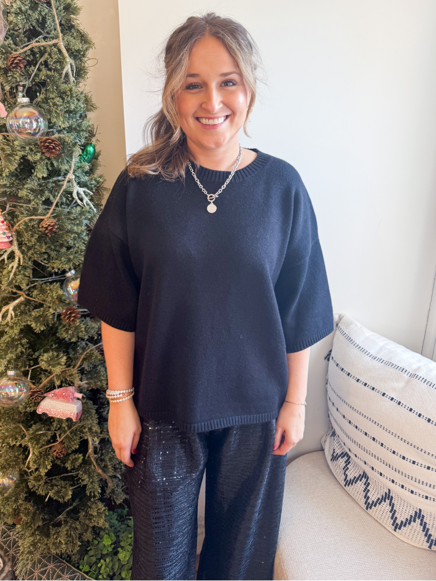 Tessa Short Sleeve Oversized Sweater - Black